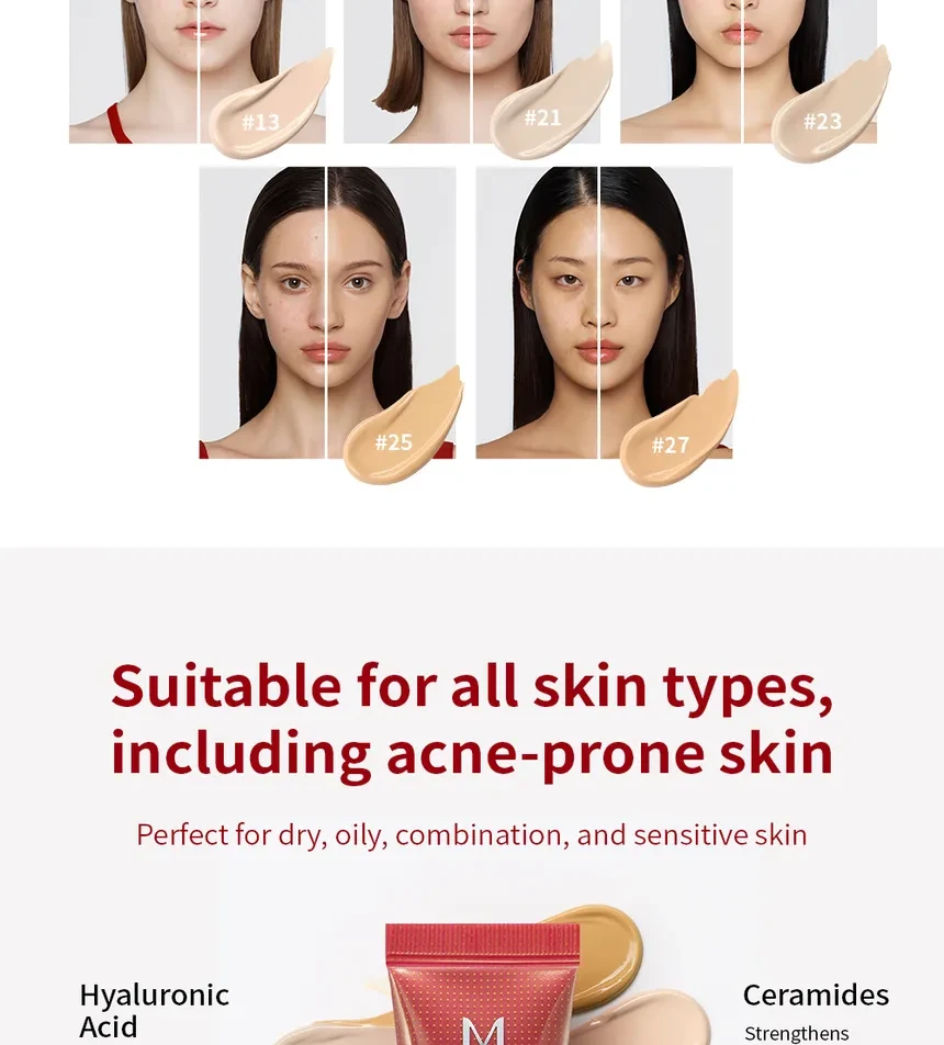 Ingredientes: Water, Cyclopentasiloxane, Ethylhexyl Methoxycinnamate, Zinc Oxide, Caprylic/Capric Triglyceride, PEG-10 Dimethicone, Glycerin, Cetyl PEG/PPG-10/1 Dimethicone, Arbutin, Talc, Phenyl Trimethicone, Beeswax (Cera Alba), Iron Oxides (CI 77492), Sodium Chloride, Iron Oxides (CI 77499), Iron Oxides (CI 77491), Methylparaben, Dimethicone, Propylparaben, Rosa Canina Fruit Oil, Rosmarinus Officinalis (Rosemary) Leaf Extract, Chamomilla Recutita (Matricaria) Flower Extract, Ceramide NP, Butylene Glycol, Fagus Sylvatica Bud Extract, Caprylyl Glycol, Benzyl Alcohol, 1,2-Hexanediol, Caprylhydroxamic Acid, Tocopherol, Benzoic Acid, Sodium Hyaluronate, Phenoxyethanol, Tropolone, Alpha-Isomethyl Ionone, Benzyl Salicylate, Butylphenyl Methylpropional, Citronellol, Hexyl Cinnamal, Hydroxycitronellal, Limonene, Linalool, Squalane Macadamia Ternifolia Seed Oil, Propylene Glycol, Fragrance, Macadamia Ternifolia Seed Oil Simmondsia Chinensis (Jojoba) Seed Oil Cyclotetrasiloxane, Polyethylene, Squalane, Fragrance (Parfum), Hydrolyzed Collagen, Simmondsia Chinensis (Jojoba) Seed Oil, Mineral Oil Polyethylene, Macadamia Ternifolia Seed Oil, Disodium Edta, Propylene Glycol Titanium Dioxide, Adenosine, Mineral Oil, Cyclotetrasiloxane, Adenosine Algae Extract, Titanium Dioxide, Hydrolyzed collagen, Disodium EDTA, Algae Extract